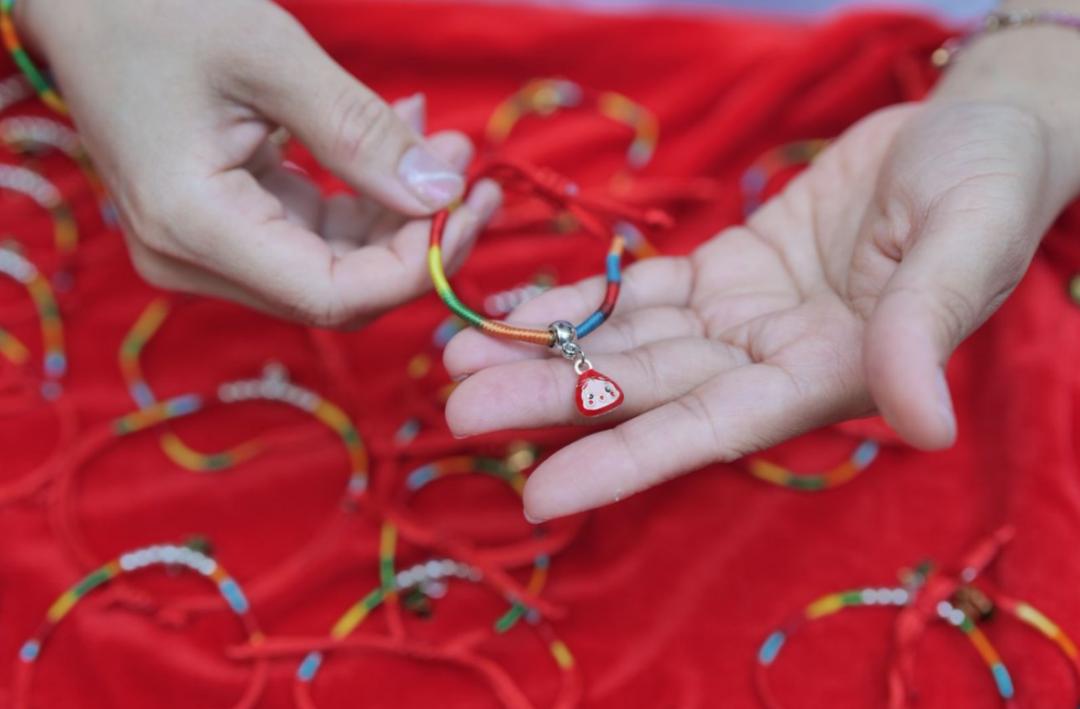 活動現(xiàn)場還為每一位參與人員準備了承載深厚文化底蘊的傳統(tǒng)飾物——五色繩。民間傳說中,五色絲線象征五方神力,能夠驅(qū)除災(zāi)邪、保佑平安?,F(xiàn)今五色繩再次成為傳遞祝福的象征。