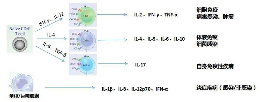 當(dāng)促炎因子顯著升高時(shí),指導(dǎo)抗炎、抗感染治療;當(dāng)抗炎因子顯著升高,慎用激素,建議胸腺肽免疫治療調(diào)節(jié);聯(lián)合檢測(cè)可以鑒別感染源,預(yù)警細(xì)胞因子風(fēng)暴,監(jiān)測(cè)放化療/免疫評(píng)估/術(shù)后引發(fā)的炎癥進(jìn)展、轉(zhuǎn)歸和療效。