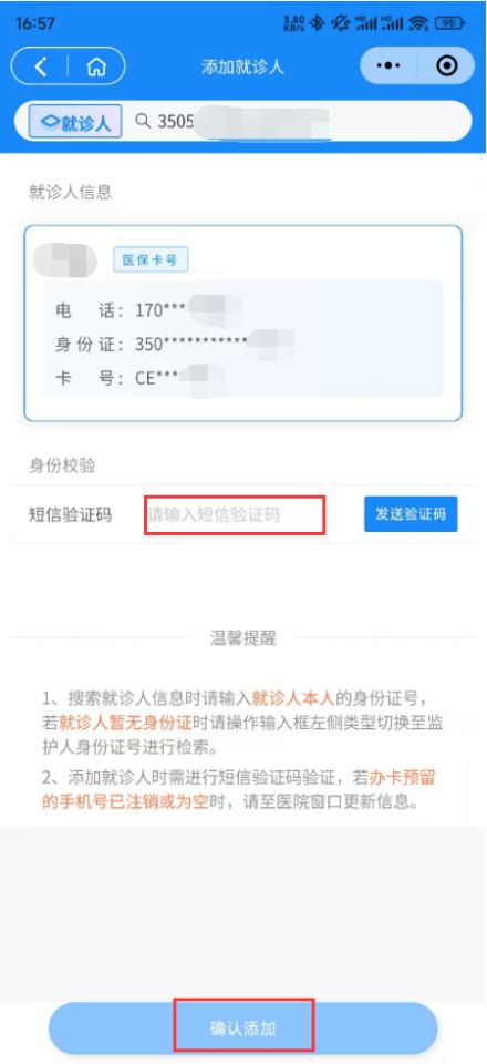短信驗(yàn)證碼默認(rèn)發(fā)送至院內(nèi)辦卡時(shí)預(yù)留的手機(jī)號(hào)碼上。