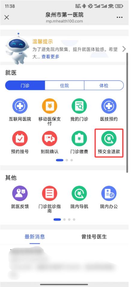 泉州市第一院關(guān)于門診預(yù)交金清退的再通知