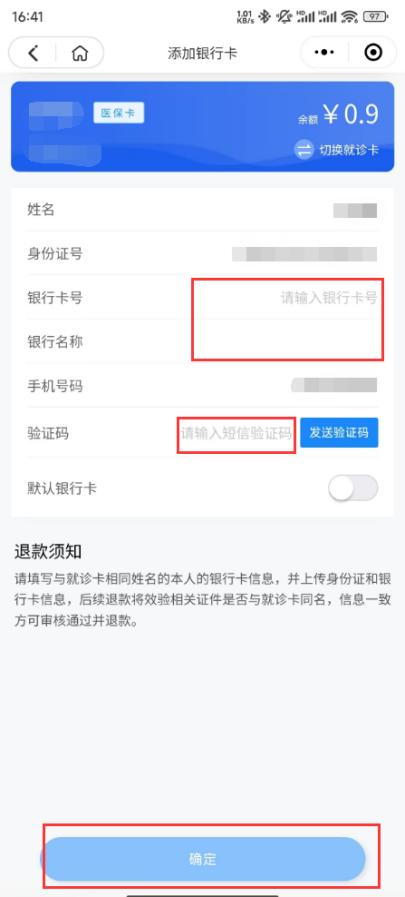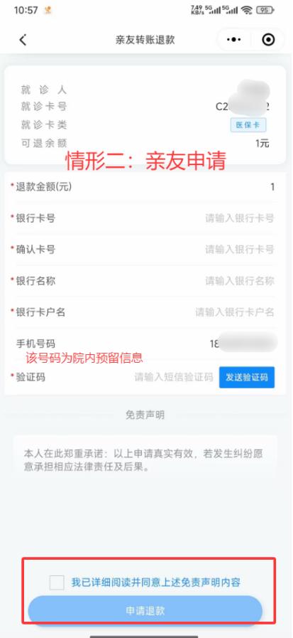 本人申請(qǐng),需綁定與就診卡對(duì)應(yīng)姓名的銀行卡。親友申請(qǐng),需自行輸入代辦人銀行卡信息。