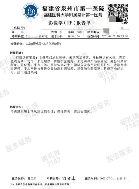 林女士是一位50歲的中年女性,從小就有飯后上腹部悶脹、疼痛不適,消化不良,害怕進(jìn)食的情況。每次餐后都要平臥位或者彎腰體位,才能緩解上腹悶脹的癥狀。因長(zhǎng)期無(wú)法正常進(jìn)食,導(dǎo)致營(yíng)養(yǎng)不良,明顯消瘦,身高160cm的她,體重僅有31kg50歲的她身體還像是一個(gè)小學(xué)生,幾十年來(lái),她尋醫(yī)問藥,都沒有找到病因。