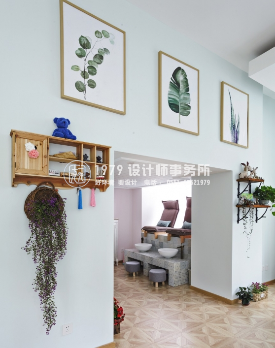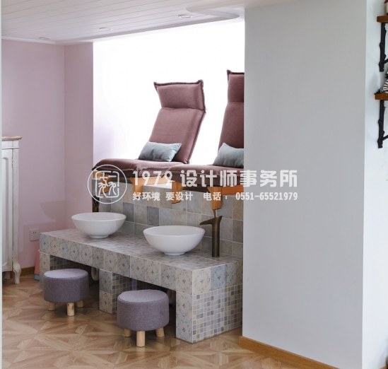 當小編看到這套案例時真的是超級喜歡,看著這些簡單、甜美的色彩真的有一股幸福感。在空間劃分上,設(shè)計師合理的把一層的空間分為了四個區(qū)域:前臺接待區(qū)、普通美甲工作區(qū)及VIP美甲專區(qū)、泡腳區(qū)。前臺接待區(qū)做為客戶流量入口,提供飲料及咖啡,給朋友及顧客休憩、閑聊和聚會提供休閑飲品。這既可以增加額外收入也讓空間多了幾份情調(diào)。設(shè)計師在美甲工作區(qū)的設(shè)計上,利用人體工程學結(jié)合美學設(shè)計思維,大幅度提高了顧客的舒適度和空間的美感。另外一層有多出來難以利用的高臺,設(shè)計師也合理將其變?yōu)槊兰鬃阍】梢宰氖孢m的座椅。二樓房間相比一樓更加安靜和隱蔽,所以合理規(guī)劃將其作為私人儲物室和紋繡美睫區(qū);利用空間的特點最大化最合理的利用每一寸空間。對于這樣的美甲店,也同樣很重視室外的效果,因為室外裝修好壞對于吸引客戶進去欲望有較大的影響,門前用15公分高的防腐木地臺上放置有客戶休息的桌椅和遮陽傘顯得精致有情調(diào),不但美觀而且實用!縱觀整體設(shè)計,設(shè)計師在滿足了業(yè)主對于美甲店的所有功能性要求之外,利用美學設(shè)計理念打造與眾不同的空間!