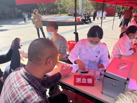 在留安山公園“醫(yī)心向黨,守護(hù)健康”義診現(xiàn)場(chǎng),心血管內(nèi)科黨支部聯(lián)合消化內(nèi)科、耳鼻喉科、骨科等科室,為當(dāng)?shù)厝罕娒赓M(fèi)測(cè)血糖、量血壓,檢測(cè)心電圖,并提供各專科疾病相關(guān)診療意見、飲食營(yíng)養(yǎng)指導(dǎo)、用藥咨詢、以及慢性病綜合管理健康教育咨詢,為患者制定個(gè)體化治療方案,共服務(wù)近300名群眾。