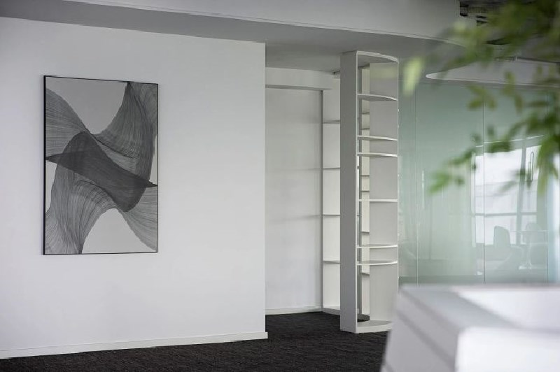 不同于以往辦公一味追求的對稱藝術(shù),經(jīng)由橫平豎直的線條勾勒,本案布局在硬朗的輪廓下規(guī)整有序,又與弧形彎道相輔相成,運(yùn)用圓角規(guī)避各處尖銳轉(zhuǎn)折,柔和視覺。