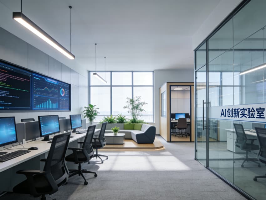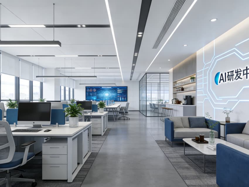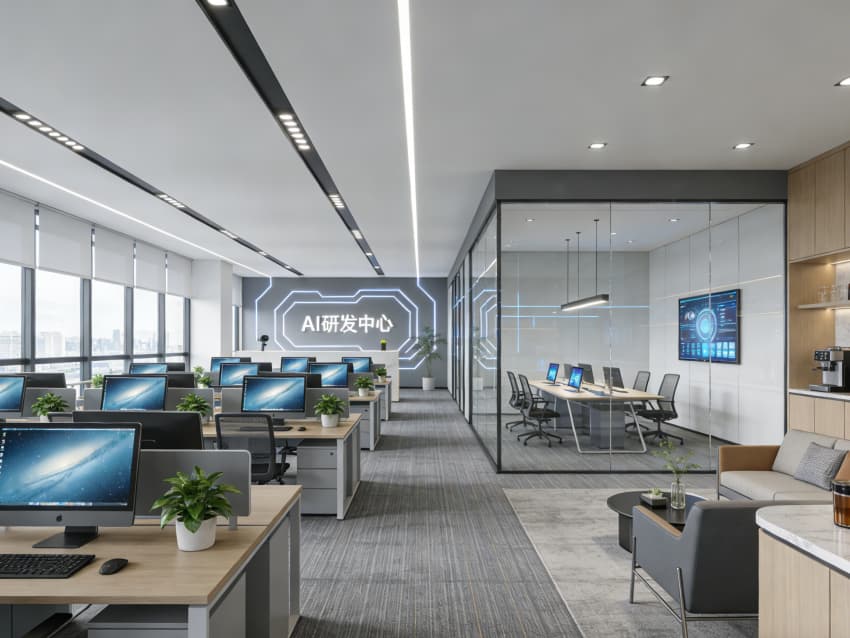 整個空間既滿足了 AI 研發(fā)的專業(yè)功能需求,又通過場景化設(shè)計激發(fā)團(tuán)隊創(chuàng)新活力,為技術(shù)人才打造了一個 “能專注、能協(xié)作、能放松” 的未來辦公場景。