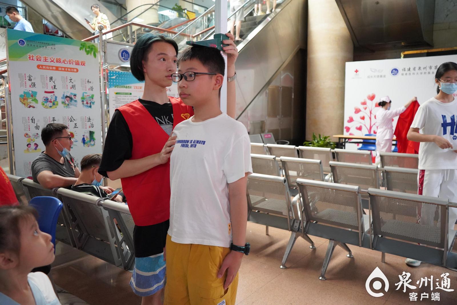 義診現(xiàn)場,志愿者為往來市民測量身高。