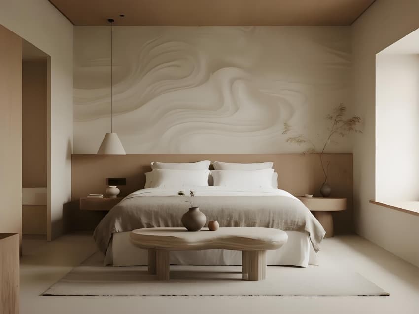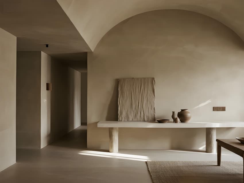 本案以"在地性的當(dāng)代轉(zhuǎn)譯"為設(shè)計(jì)核心,打造反標(biāo)準(zhǔn)化的現(xiàn)代民宿范本。建筑采用去裝飾化語(yǔ)言,保留原生地貌肌理,以懸浮體塊構(gòu)成空間序列。色彩系統(tǒng)提取自然色譜:晨曦灰、苔原綠、陶土橙,通過(guò)漸變釉面磚實(shí)現(xiàn)與環(huán)境的色彩滲透。