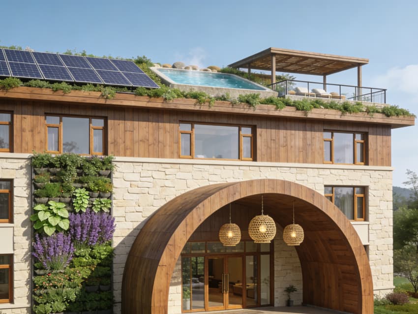 整體以原木色、淺米色、薄荷綠為基調(diào),材質(zhì)選用天然實木、環(huán)保藤編、棉麻布藝及防滑天然石材。墻面局部嵌入生態(tài)景觀墻與康養(yǎng)理念標(biāo)語,燈光采用自然漫射照明與暖調(diào)氛圍燈帶組合。各區(qū)域通過綠植廊道與木質(zhì)連廊銜接,動線舒緩,隨處可見的自然綠植與原生材質(zhì)傳遞療愈力量,既彰顯康養(yǎng)酒店的自然雅致格調(diào),又以人性化康養(yǎng)配置助力賓客身心放松,實現(xiàn)旅居體驗與康養(yǎng)需求的完美契合。