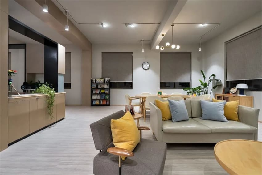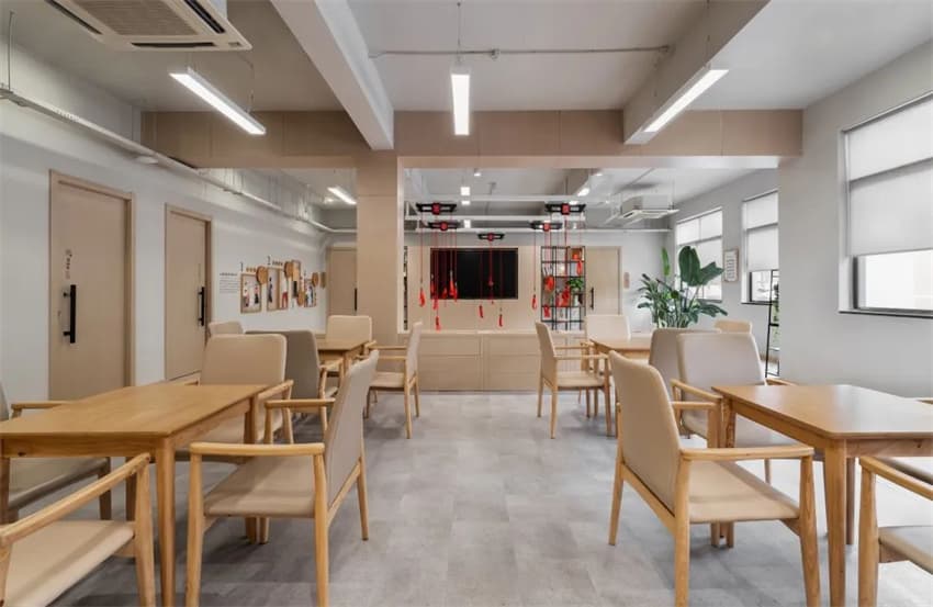為了滿足不同性格的長輩需求,我們在這個(gè)區(qū)域規(guī)劃了多樣化的休閑活動(dòng)空間,分布了三個(gè)空間:休閑區(qū)、午休區(qū)、活動(dòng)區(qū)。鼓勵(lì)老人開展多樣化活動(dòng),培養(yǎng)興趣愛好,適量的鍛煉與手工制作有助于喚醒記憶,在空間構(gòu)成上尊重并鼓勵(lì)了老年人過有意義、有價(jià)值的生活。